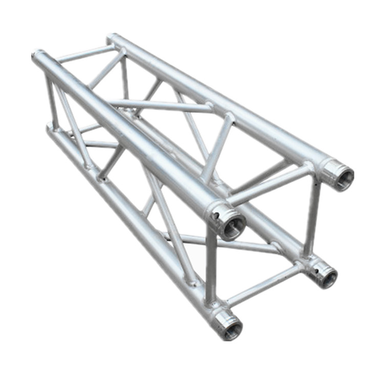 2. Hohe Tragfähigkeit: Trotz seiner Leichtbauweise hat beleuchtender Aluminiumbinder eine bemerkenswerte lastentragende Kapazität. Er wird ausgeführt, um dem Gewicht von schweren beleuchtenden Befestigungen und von Ausrüstung zu widerstehen und stellt die Sicherheit und die Stabilität der verschobenen Komponenten sicher.