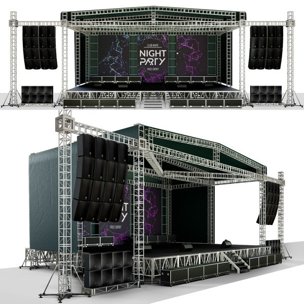 Bühnenkonzertträger sind außerdem mit Aluminiumbarrieren, Lautsprechern und LED-Wandlampen für Konzerte ausgestattet.